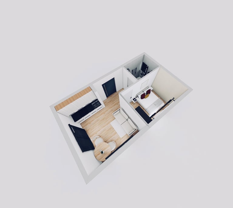 Gyvenamasis plotas siekia 28 m², o erdvi terasa – net 13 m², tad vasaros vakarai lauke taps dar malonesni. Vidaus išplanavimas pritaikytas patogiam kasdieniam gyvenimui – čia rasite atskirą miegamąjį, svetainę su virtuvės zona bei vonios kambarį su dušu ir WC.