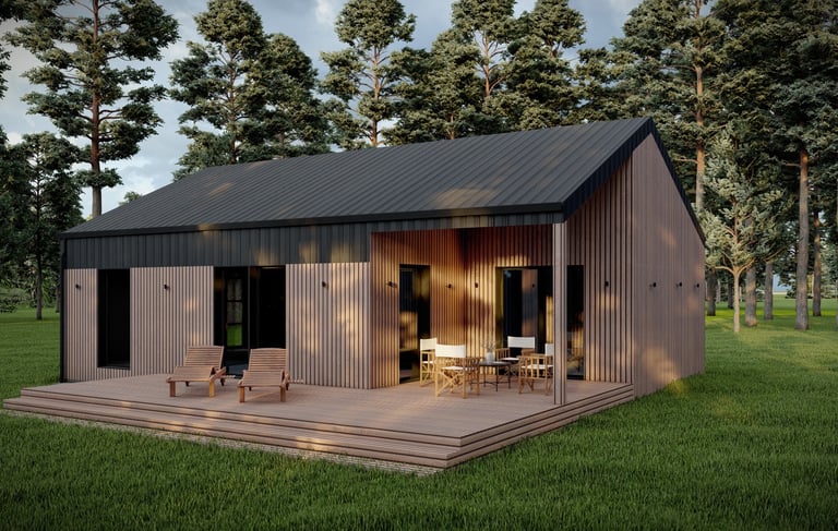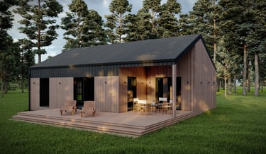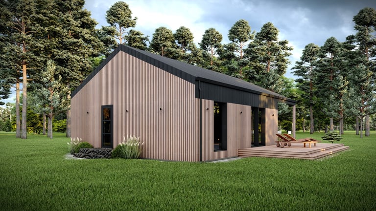 Modulinis namas „Lokys“ – tai didžiausias ir bene įspūdingiausias „StepModul“ kolekcijos modelis, skirtas tiems, kurie nori derinti erdvų gyvenimą, šiuolaikišką dizainą ir pilną sezoniškumo nepriklausomybę.