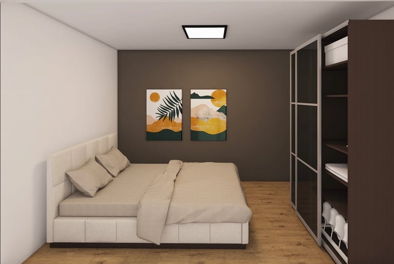 58 m² vidaus erdvės leidžia patogiai įrengti pagrindines zonas: miegamąjį, vaiko kambarį, svetainę su virtuve ir vonios kambarį su WC/dušu taip pat šiame modelyje jau atsiranda papildoma patalpa - Sandėliukas. 16 m² terasa – puikus priedas tiek poilsiui, tiek svečių priėmimui ar vakarienei lauke.